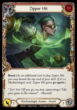 Zipper Hit (Red) [ARC029-C] (Regular) is a Flesh and Blood single card from the expansion: Arcane Rising - First